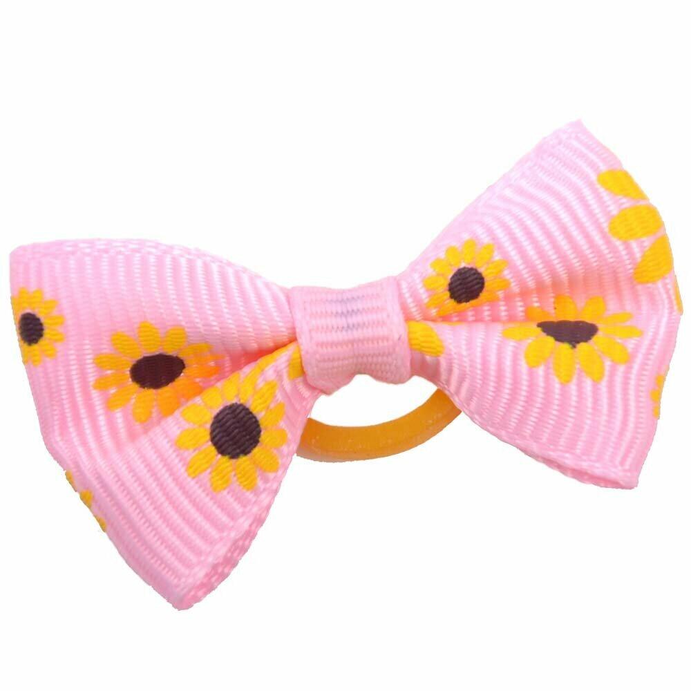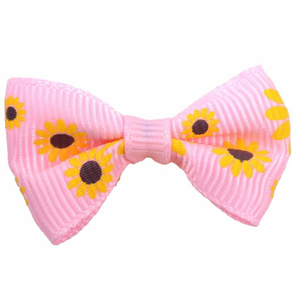 Lyserød hundesløjfe med solsikker. Lavet i det fineste håndværk, og derfor er hver eneste hundesløjfe unik