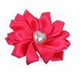 Håndlavet hundesløjfe med rød blomst og perle. Sløjfen med en diameter på ca. 3,5 cm er lavet i det fineste håndværk, og derfor er hver eneste hundesløjfe unik.