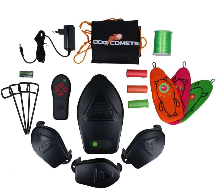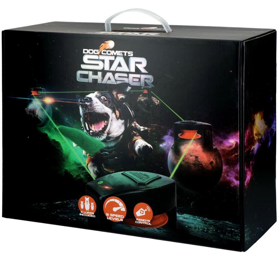 Med Dog Comets Star Chaser kan enhver hund bruge sin energi perfekt. Star Chaser kan sættes op på en græsplæne på få minutter, så hunde kan løbe efter 'lokkemaden'. Dette giver ikke kun fysisk anstrengelse (perfekt til hunde, der er fulde af energi og har brug for masser af daglig motion), men også mental stimulering (ideel til hunde, der er klar til en ny udfordring). Fjernbetjeningen gør det nemt at justere hastigheden og den retning, som 'lokkemaden' bevæger sig i, for en interaktiv leg mellem hund og ejer.