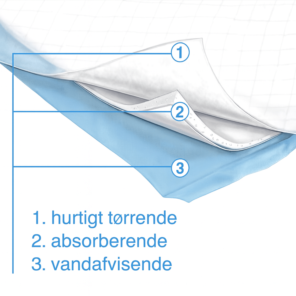 • Fremstillet i tre lag for optimal absorbering og holdbarhed
