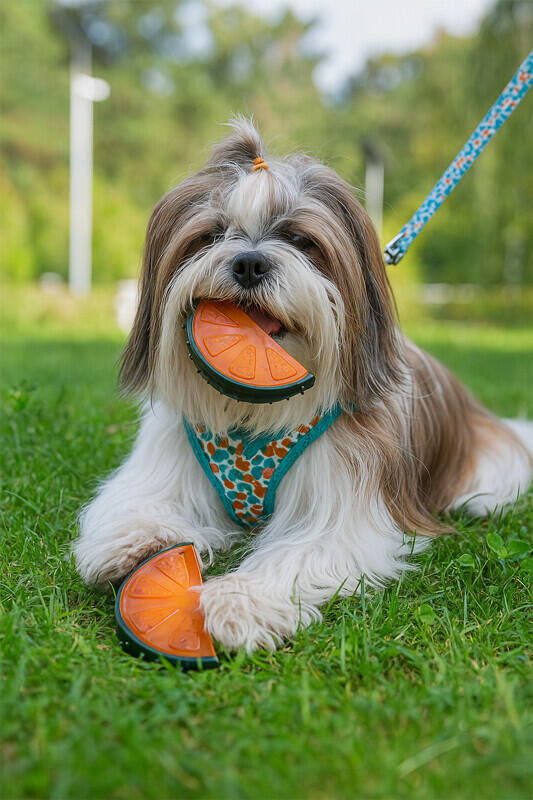 Giv din hund en forfriskende og sjov legeoplevelse på varme dage med dette kølelegetøj formet som en citrusskive. Det farverige design fanger hurtigt hundens opmærksomhed og kombinerer leg med effektiv afkøling. Fyld legetøjet med vand, læg det i fryseren – og lad din hund nyde en behagelig kølende effekt, som virker lindrende både i sommervarmen og ved tandfrembrud.