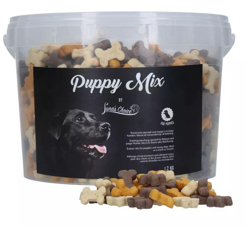 Denne trænersnack er en semi-fugtig blød godbid. Det betyder, at disse snacks stadig er let fugtige og derfor ekstremt kraftige i smag og duft. Ideel til at belønne din hvalp eller unge hund på en positiv måde under træning, kurser eller når du lærer grundlæggende kommandoer. Puppy Mix er specielt skræddersyet til unge hundes behov og er den perfekte belønning. Denne trænersnack er fremstillet i Holland.