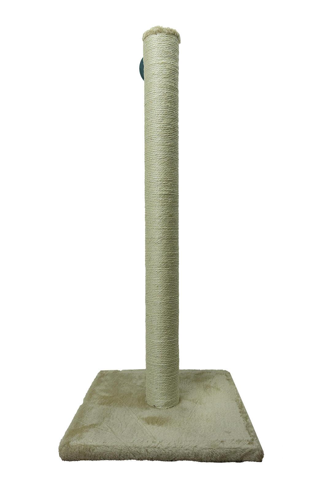 Bundpladen er beklædt med blødt plys, som giver et hyggeligt og stabilt underlag, mens søjlen er omviklet med slidstærkt sisalreb, der er perfekt til kattens kløer.