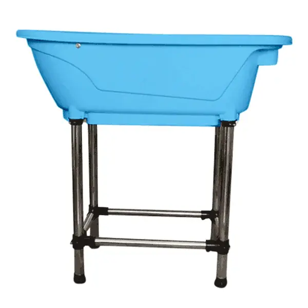 Tools-2-Groom Mini Hundebad på ben er en praktisk og ergonomisk badeløsning til vask af mindre hunde, katte og andre små kæledyr. Badekarret er fremstillet i robust, hvid plast og monteret på stabile ben i rustfrit stål, så du undgår at skulle bøje dig under vasken.