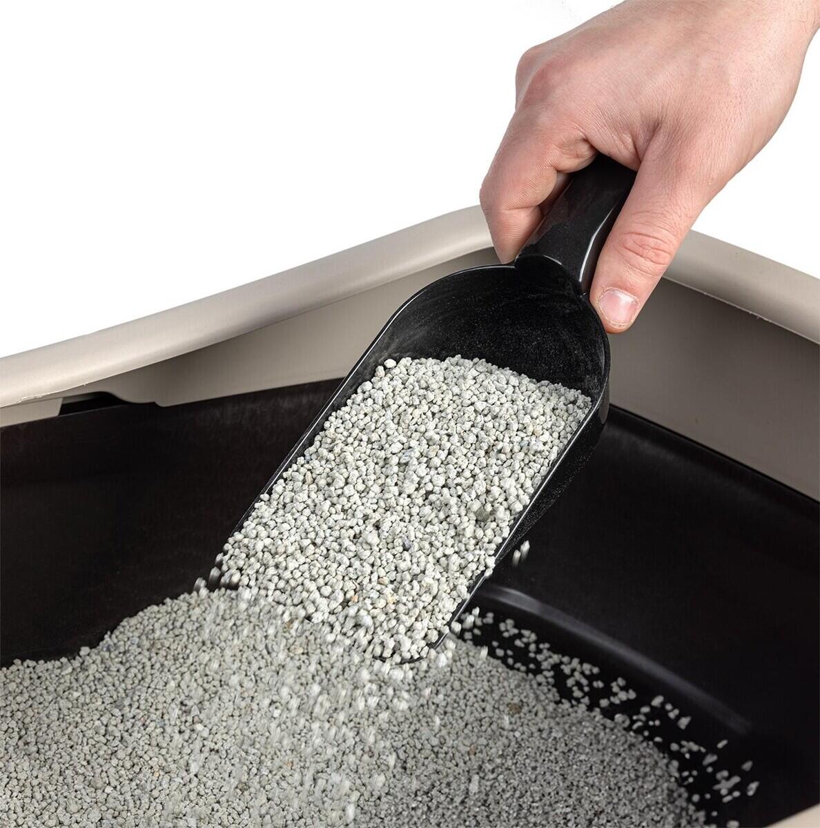 En universal skovl designet til kattegrus, foder og andre løse materialer. Velegnet til klumpende og ikke-klumpende kattegrus, samt træ- og silikonetyper. Dens største fordel er nem rengøring.