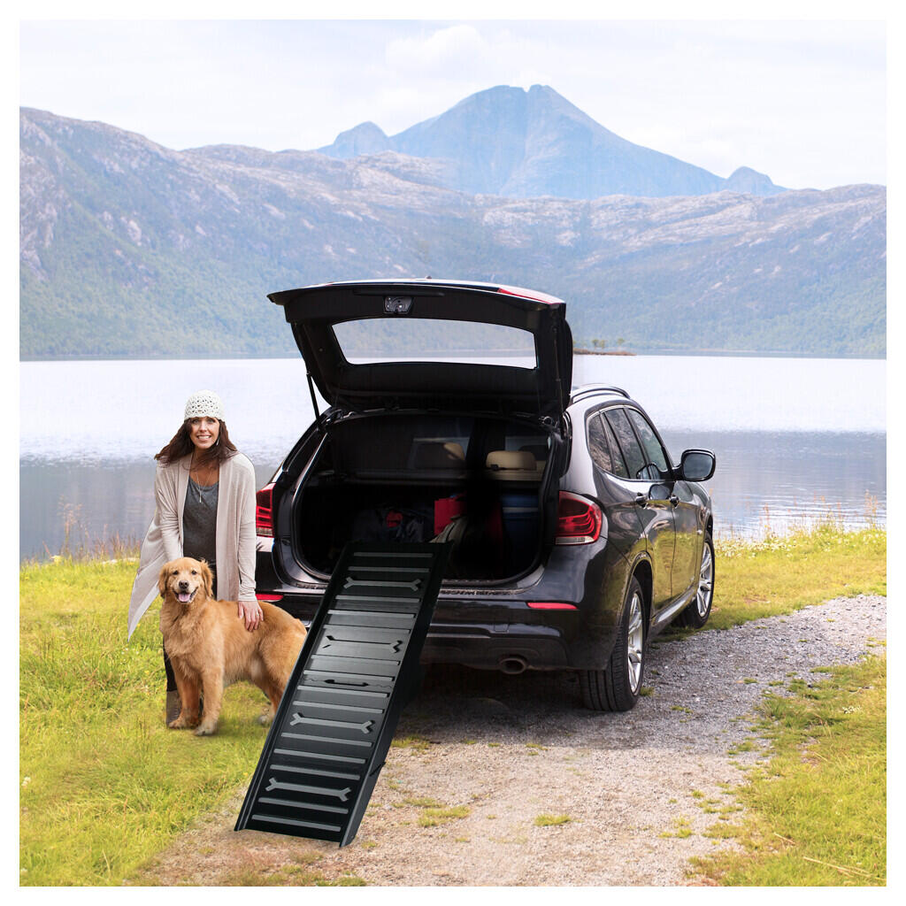 Rampen kan foldes i 4 dele, hvilket gør den nem at transportere og opbevare. Den passer til de fleste SUV’er, sedaner og minivans og er perfekt til både hverdag og rejser.