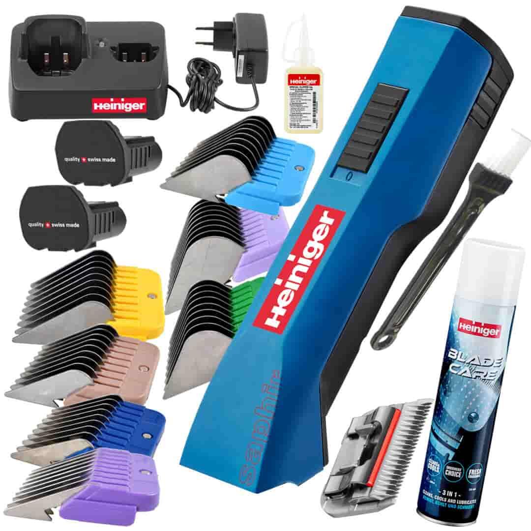Heiniger Saphir ledningsfri klipper blå med omfattende tilbehør. Dette tilbud inkluderer den velprøvede Heiniger Saphir (blå), komplet med 2 batterier til stort set uendelig kraft